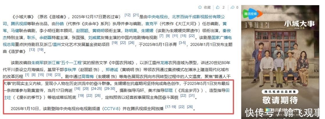 13. 央视八套联合腾讯视频同步发布消息,《小城大事》确定𱆍日上线播出。